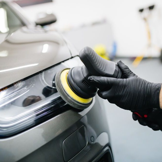 - Sanding, buffing of the headlights